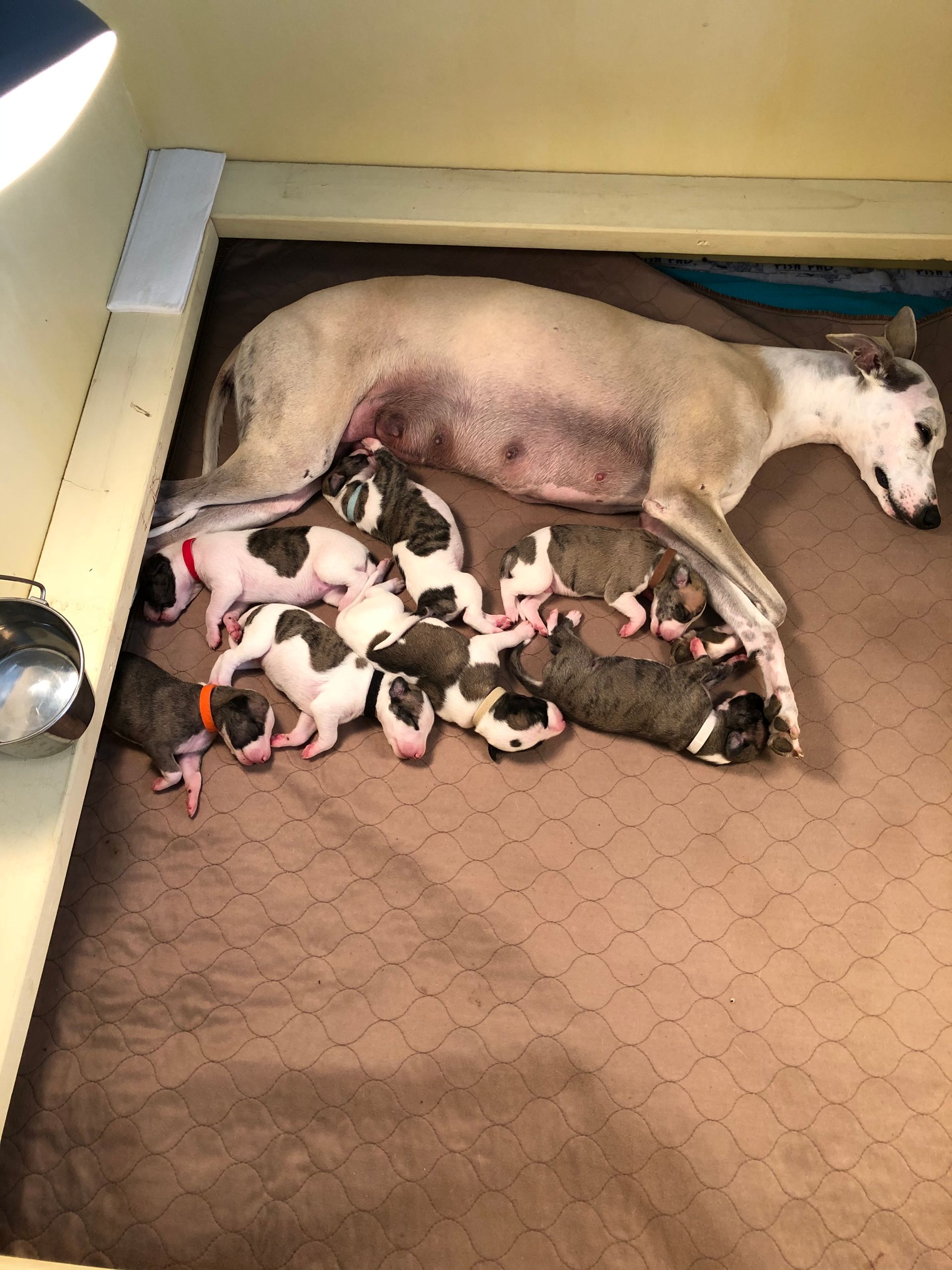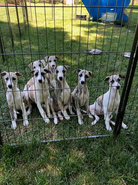 Lynesse gave birth to seven happy, healthy puppies on April 9, 2020. They remained with me until week 10, when they began leaving for their new homes. It was very difficult deciding which puppy to keep here at Panache. A male was my original intention, but there was also a female who caught my eye. So, against my better judgement (LOL), I wound up keeping two. Elton and Venus reside with us and are now 2 years old. They are tearing it up on the coursing field and doing very well in the show ring. For their latest endeavors, see the Awards page.