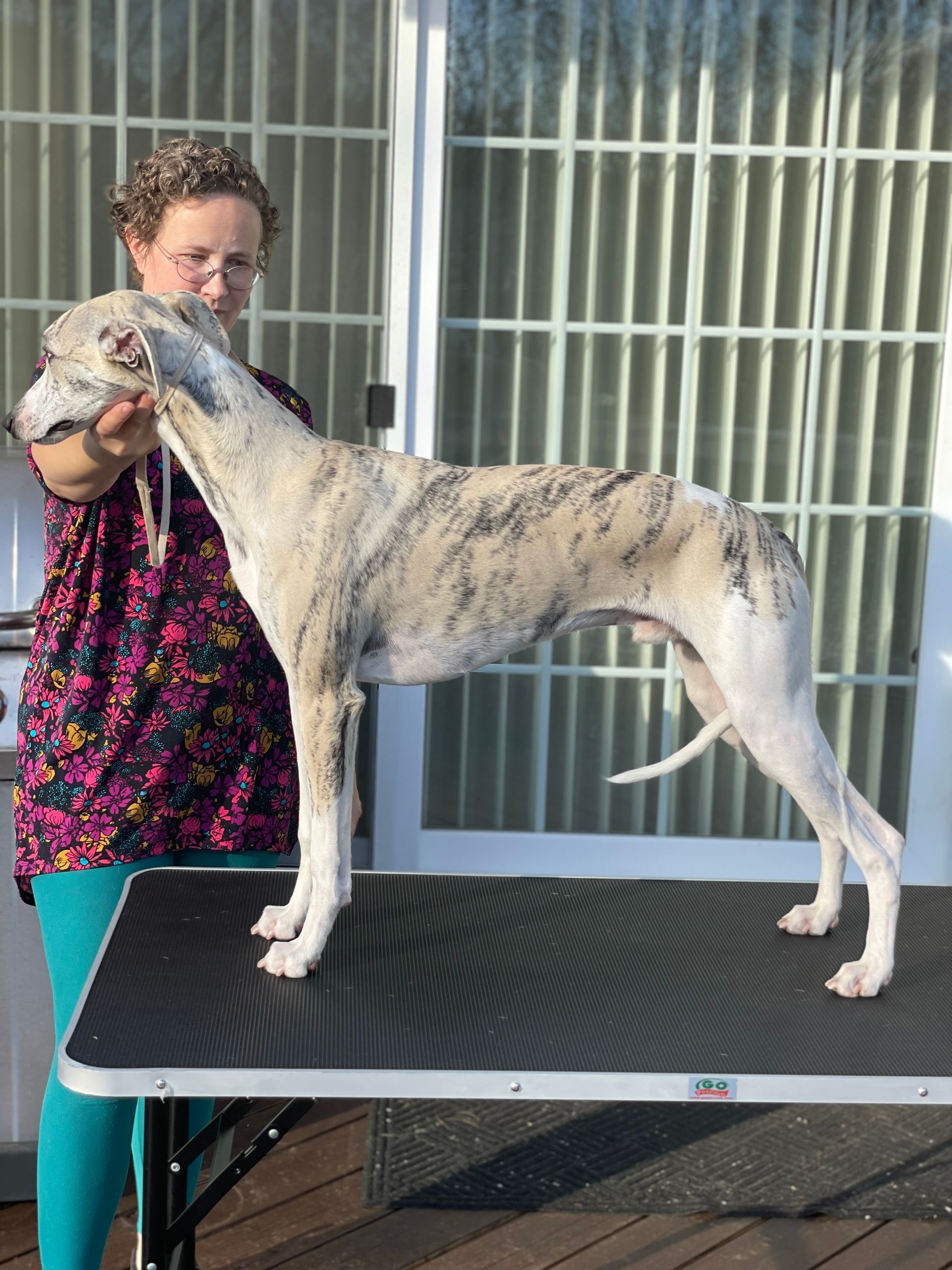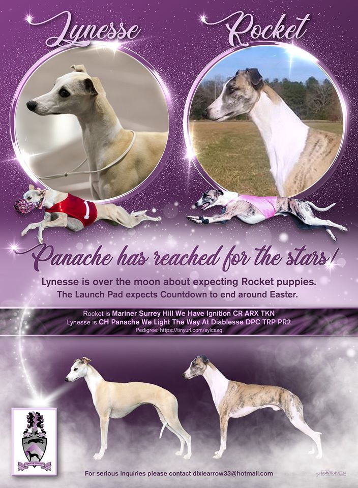 Lynesse gave birth to seven happy, healthy puppies on April 9, 2020. They remained with me until week 10, when they began leaving for their new homes. It was very difficult deciding which puppy to keep here at Panache. A male was my original intention, but there was also a female who caught my eye. So, against my better judgement (LOL), I wound up keeping two. Elton and Venus reside with us and are now 2 years old. They are tearing it up on the coursing field and doing very well in the show ring. For their latest endeavors, see the Awards page.